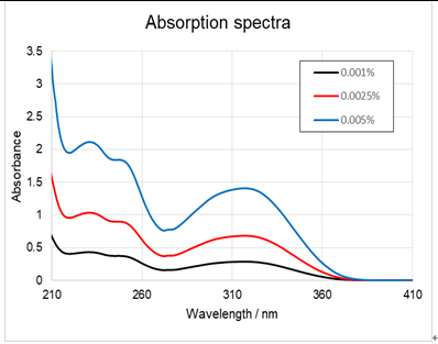 (in Methanol _____0.001% _____ 0.0025% _____ 0.005%)