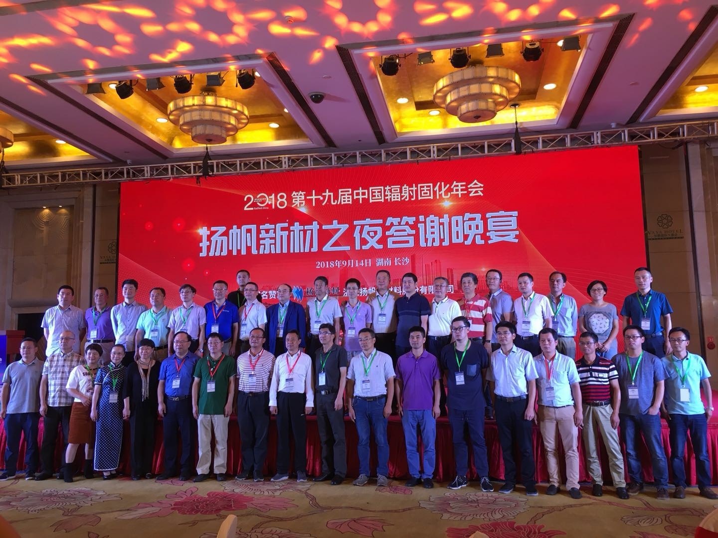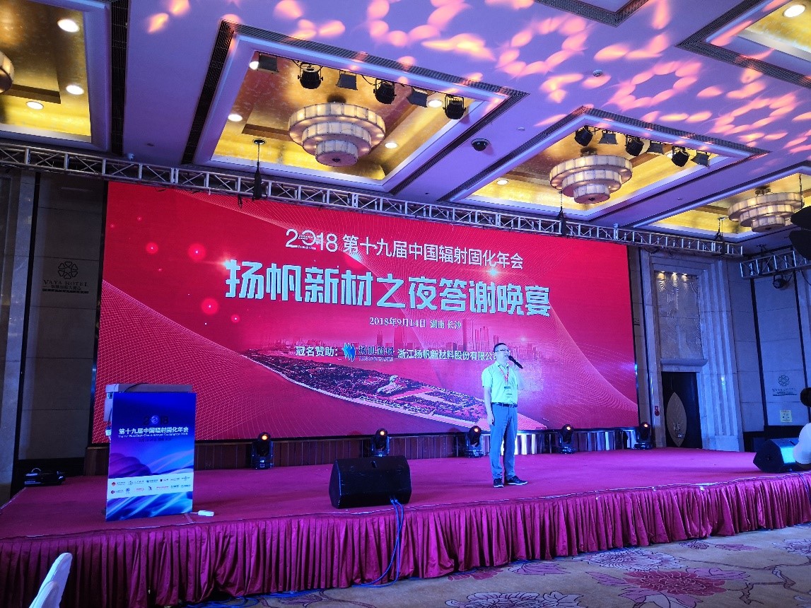 2018年9月11日,第十九屆中國輻射固化年會在長沙召開。揚帆新材董事長樊彬、總裁李耀土以及副總裁朱俊飛、技術總監吳紅輝等出席會議。