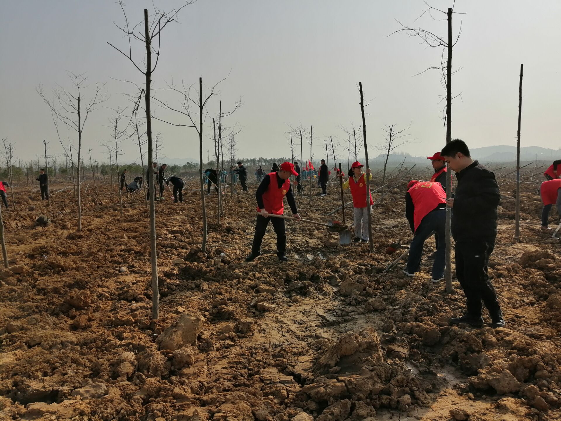 3月12日上午 ,團員們在團委書記的帶領下到達預定地點,按照預先的分組,全體人員很快就投入了植樹勞動,植樹現場,熱鬧非凡。團員們分工協作,有的挖坑,有的植樹苗,栽得認真,干得賣力,整個植樹活動現場一片熱火朝天的勞動景象。大家一邊植樹,一邊了解今年種植的樹木品種、生長周期,樹木成活等情況,充分享受著植樹活動帶來的樂趣。經過一上午的努力,200棵樹苗栽植完成,活動取得圓滿的成功。