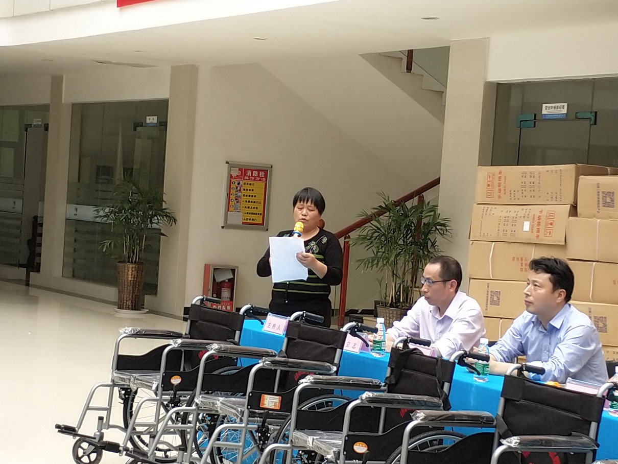 儀式最后陳總代表公司向殘聯(lián)宗理事長(zhǎng)移交了100輛輪椅,殘聯(lián)按事先分配計(jì)劃,當(dāng)場(chǎng)向19個(gè)鄉(xiāng)鎮(zhèn)分發(fā)了全部輪椅。活動(dòng)取得圓滿成功!