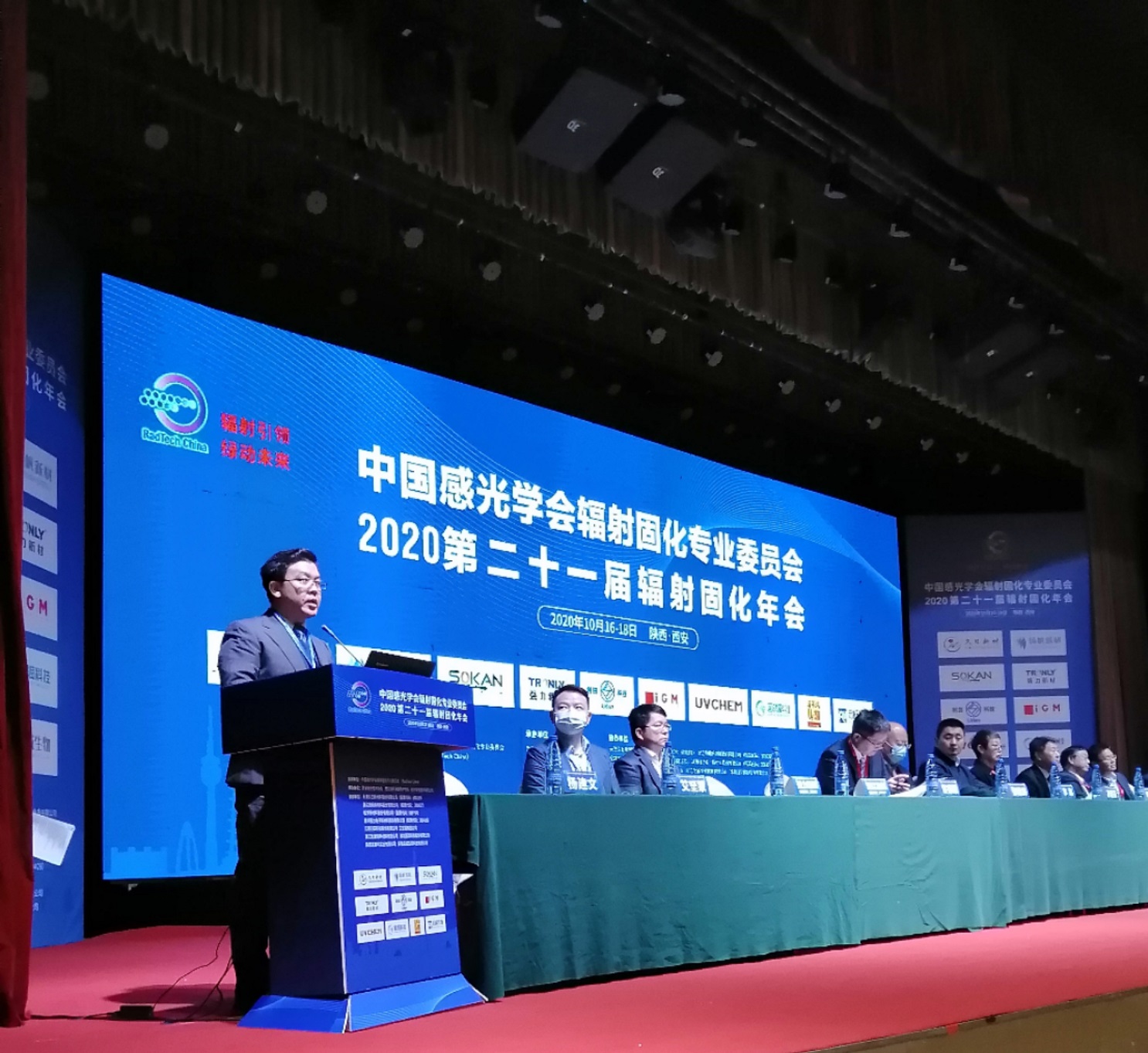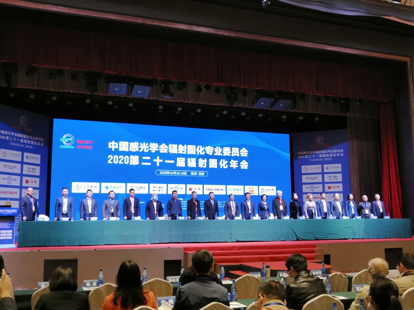 2020年10月16日-18日,《中國感光學(xué)會輻射固化專業(yè)委員會》第二十一屆輻射固化年會在西安順利召開,有近500名行業(yè)企業(yè)界、學(xué)界領(lǐng)袖參會。作為行業(yè)內(nèi)重要企業(yè)及本次會議的贊助商之一,浙江揚帆新材料股份有限公司董事長樊彬、副總裁朱俊飛以及技術(shù)總監(jiān)吳紅輝等率團出席會議。