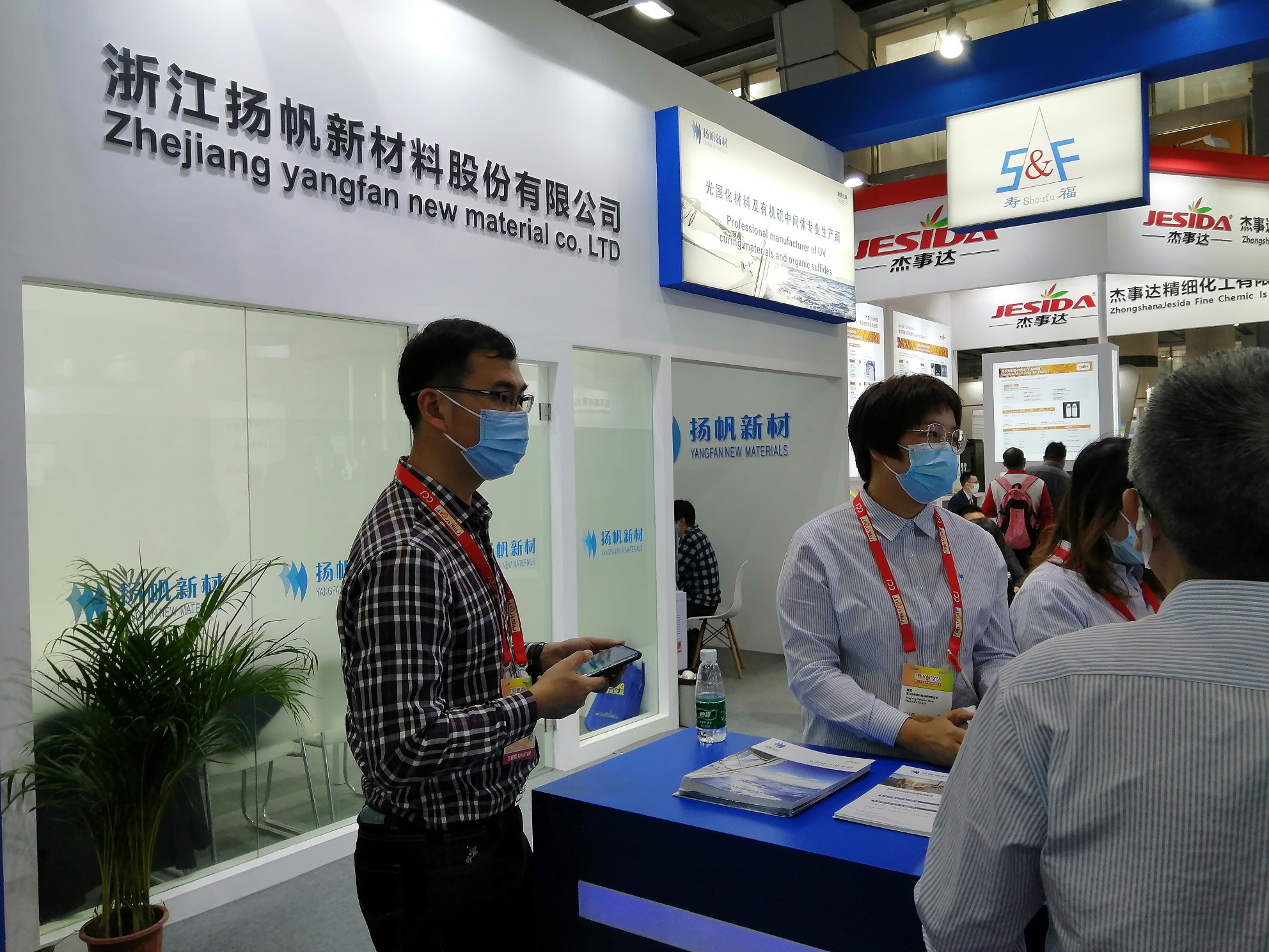 展會期間,“揚帆新材”受到了業內人士的廣泛關注,新老客戶積極洽談。其中,大家對內蒙古揚帆新投產的1173、184、TPO等光引發劑產品進行了深入了解和交流,并對內蒙揚帆未來的產品和發展一致看好。