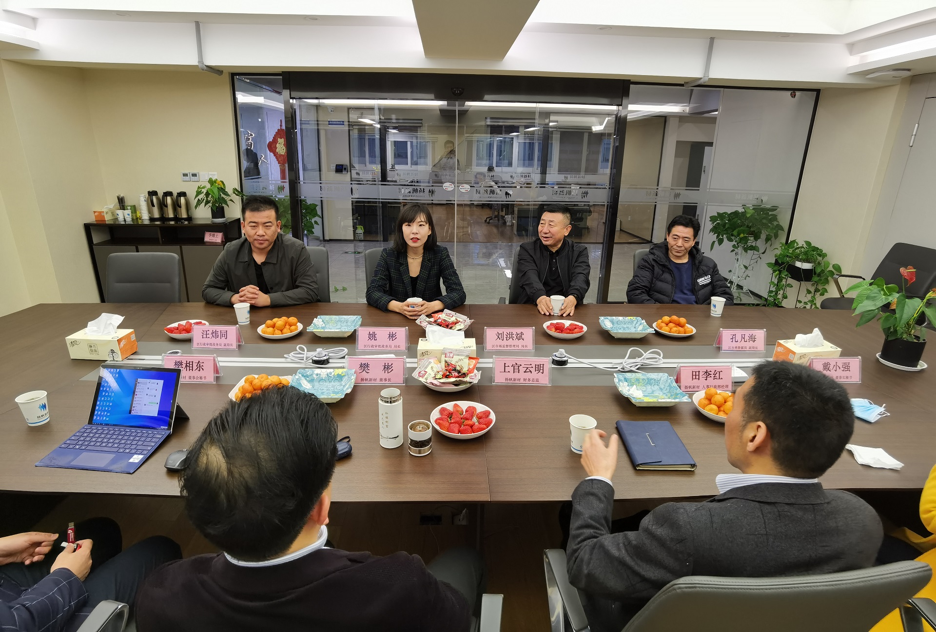 在聽取了樊董的介紹后,開發區各位領導對揚帆新材選擇阿拉善盟建設大型的生產子公司表示歡迎,對揚帆新材以往所取得的成績表示肯定,同時也預祝揚帆新材內蒙子公司順利投產。領導們表示,內蒙揚帆的建成投產不僅能給企業帶來效益,同時也能促進高新開發區的經濟增長,解決人員就業問題,作為政府職能部門也將以更開放更全面地服務態度,為企業創造更加舒適、信任的投資環境,以回報企業對高新技術產業開發區的信任。