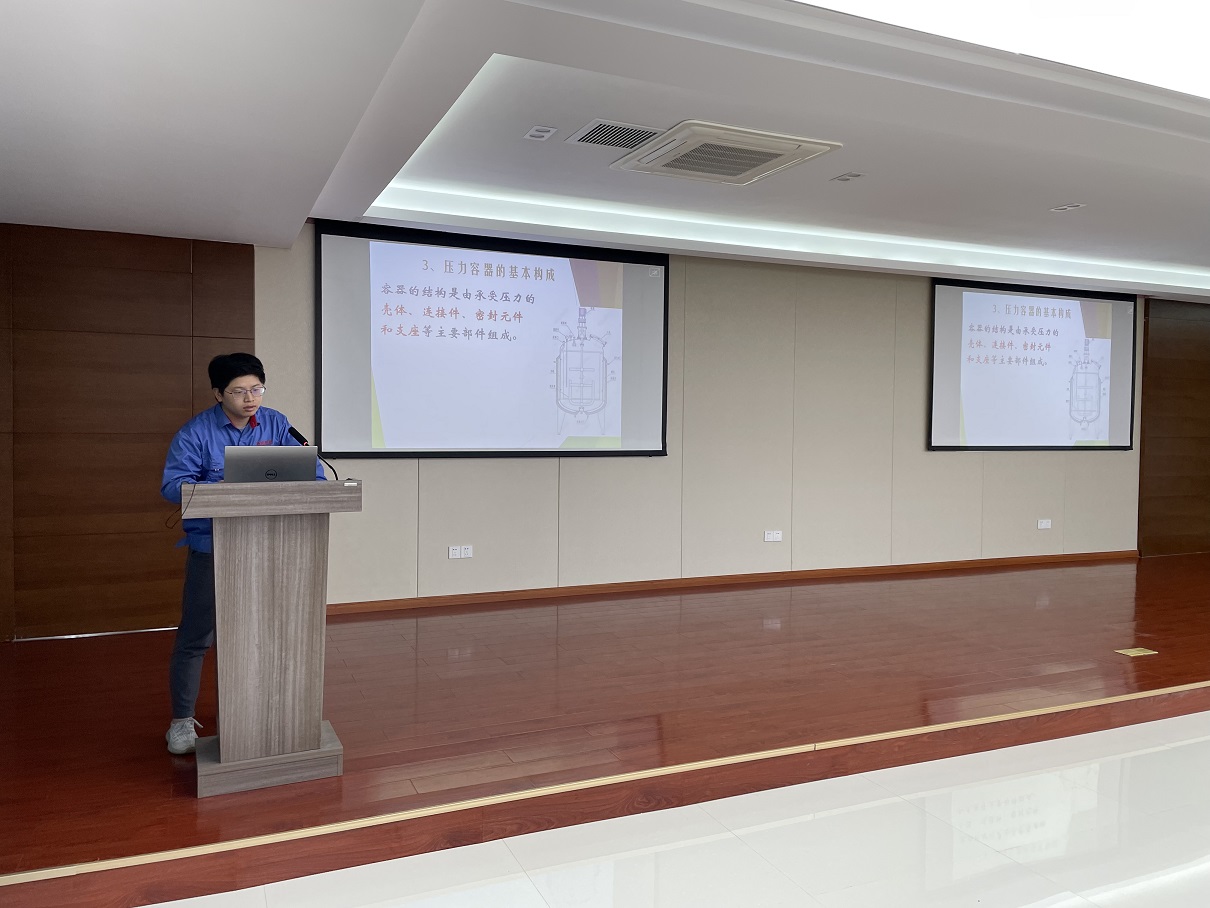 接下來,設備部陶洋炯為員工進行了壓力容器的培訓,進一步增長了全體員工對壓力容器的認識、使用、維護、管理和安全生產專業知識,也讓專業從事特種設備操作人員擰緊了思想上的安全螺絲