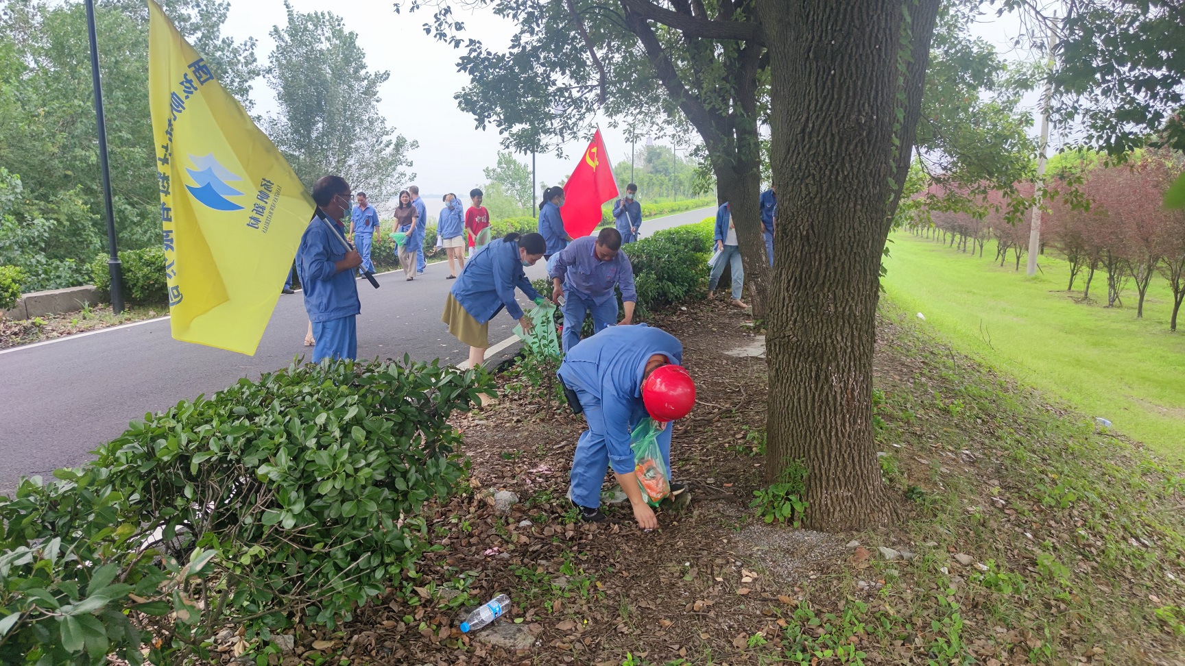 會后,組織黨員開展了:共護我們的后花園——最美長江岸線清堤活動。