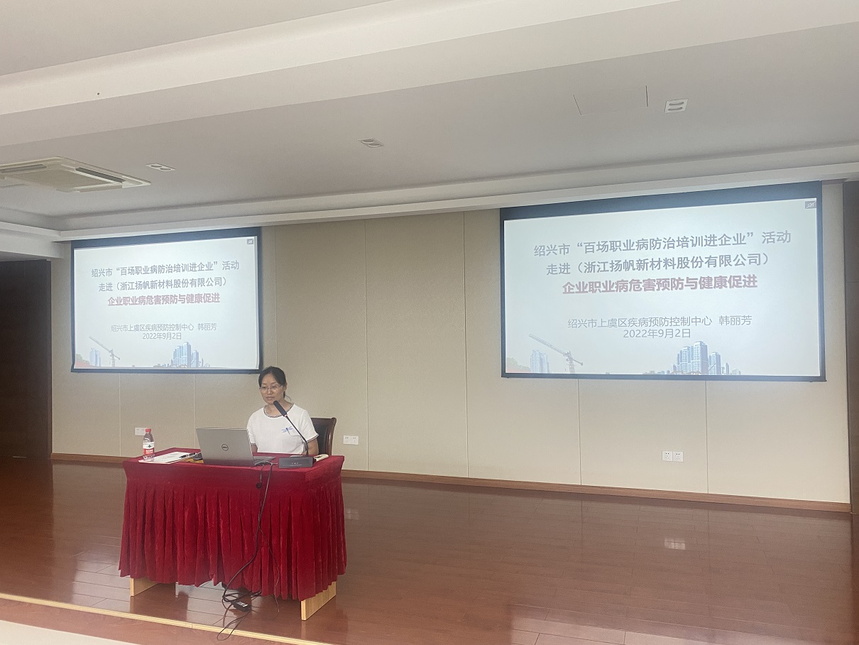 9月3日下午,紹興市“百場職業(yè)病防治培訓(xùn)進(jìn)企業(yè)”活動走進(jìn)浙江揚(yáng)帆新材料股份有限公司,以“企業(yè)職業(yè)病危害預(yù)防與健康促進(jìn)”為主題開展宣講,旨在進(jìn)一步豐富公司“職工安全文化”內(nèi)涵,提高廣大職工個(gè)人防護(hù)技能,增強(qiáng)職工的安全感和幸福感,公司三十余名員工參加此次主題宣講活動。