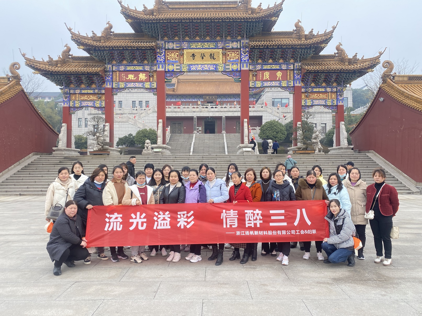 揚帆新材上虞工會聯(lián)合婦聯(lián)開展了主題為“流光溢彩·情醉三八”的團建活動——紹興兜率天宮、安昌古鎮(zhèn)一日游,公司生產(chǎn)基地及研發(fā)三十余名女工同赴春天之約,共綻巾幗芳華。