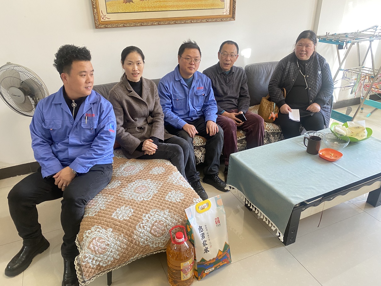 在員工謝東的家中,李琴等代表公司首先詢問(wèn)了他們的生活和健康狀況,并進(jìn)行了親切的交談,感謝他們對(duì)揚(yáng)帆新材多年來(lái)做出的重要貢獻(xiàn)。