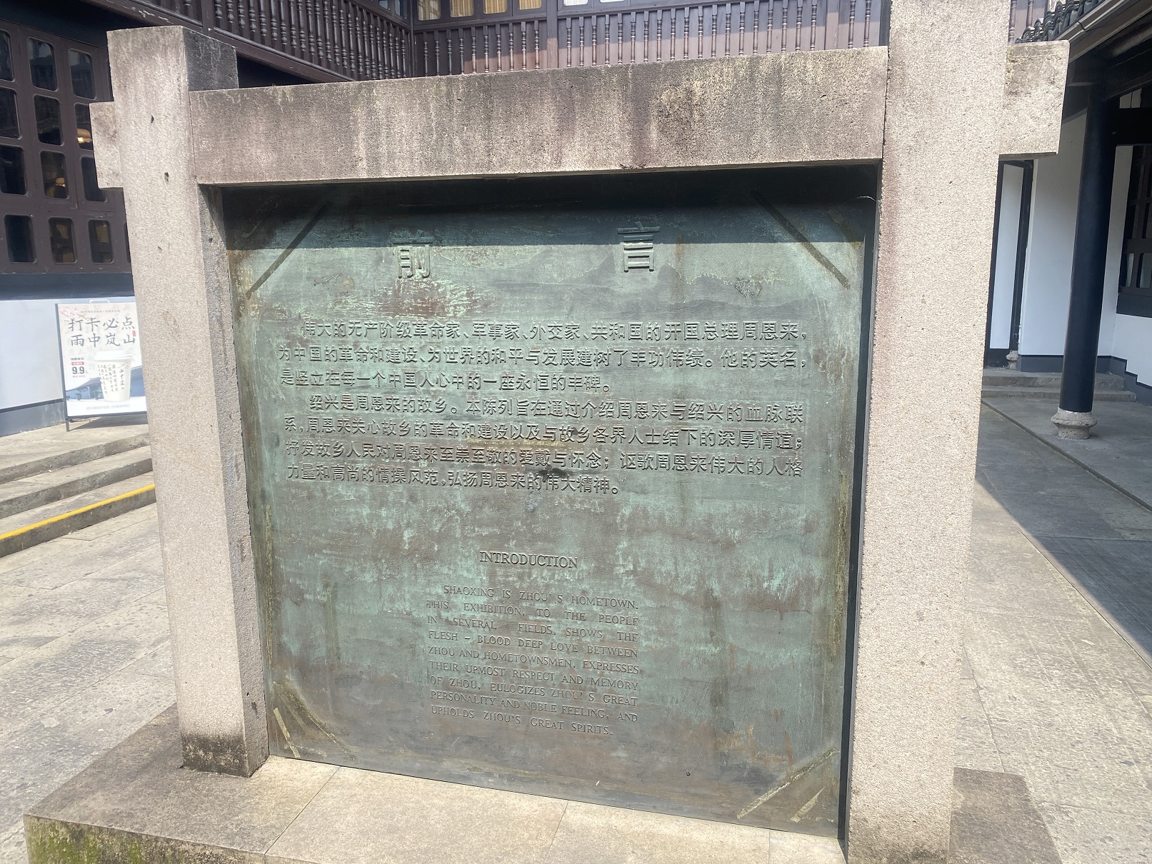 紹興周恩來(lái)紀(jì)念館位于紹興市越城區(qū)勞動(dòng)路369號(hào),館區(qū)由周恩來(lái)祖居、風(fēng)范園(紀(jì)念館)、紀(jì)念廣場(chǎng)組成,現(xiàn)為浙江省重點(diǎn)文物保護(hù)單位、浙江省黨員教育培訓(xùn)基地。